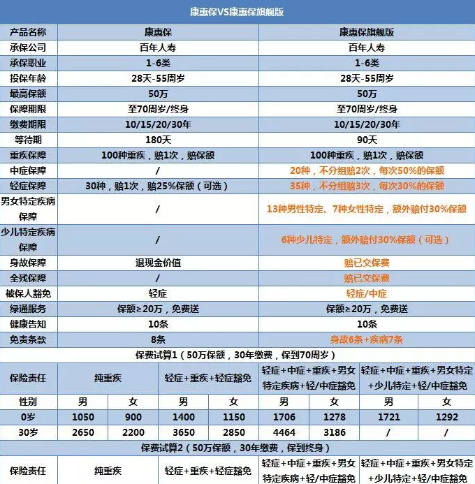 如表所示,與舊版本的康惠保相比,升級后的康惠保升級了6個點: