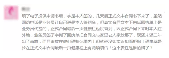 部分都買過保險的朋友可能聽過這句話,這句話什么時候出現(xiàn)的呢?就是自己確定購買產(chǎn)品的時候,需要填寫一份“健康告知單”,原本這張健康告知是要本著最大誠信原則,也就是必須如實(shí)填寫,結(jié)果業(yè)務(wù)員為了能出單,怕寫過病史之后公司不能承保,這時候有些業(yè)務(wù)員就開始教買保險的朋友,也就是投保人,讓他們?nèi)鲋e:都填否,白紙黑字沒有病史,對于隱瞞病史的保單,后期保險公司會拒絕理賠!