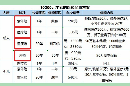 月入1萬三口之家如何配置保險?
