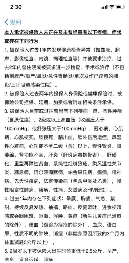 要提到的另一點是,很多小伙伴都在提問:健康告知不能放在顯眼的地方嗎? !可以放大嗎?事實上,對于支付寶上的大多數(shù)產(chǎn)品,健康告知已經(jīng)非常明顯了:但是,如果您在線申請保險,只要您點擊購買,健康告知就會跳出單獨的頁面。投保人必須檢查以下內(nèi)容(按照健康告知)通過并完成保險。通常健康告知將包含以下內(nèi)容: