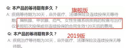在常見問答中,升級后的2019版不再對扁桃體、甲狀腺、疝氣、女性生殖系統(tǒng)疾病的檢查與治療設(shè)定理賠時間限制。