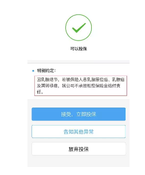 雖然乳腺疾病責(zé)任免除了,但是其他疾病還可以正常投保,其實對于消費者來說已經(jīng)非常友好了。