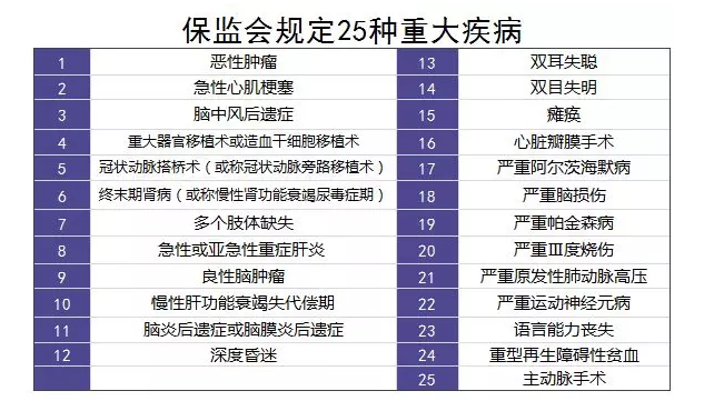 保監(jiān)會規(guī)定重疾險產(chǎn)品必須包含的25種重大疾病,已經(jīng)涵蓋了絕大多數(shù)常見疾病,占重疾險理賠的95%左右。而保險公司把其他的不常見疾病添加進來,提高到上百種,也不過是錦上添花,理賠重心仍在保監(jiān)會規(guī)定的25種重大疾病里。