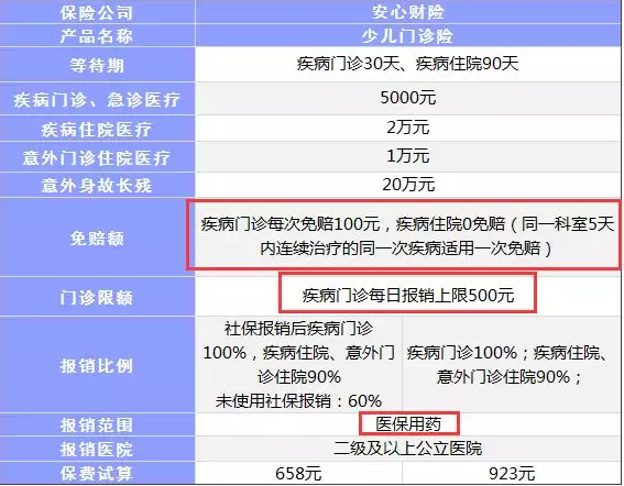 免賠額:對!它還有免賠額的!而且還是按次數(shù)算的!安心少兒門診險算是比較良心的了,如果5天內(nèi)在同一科室連續(xù)治療,只扣一次免賠額,也就是100元。