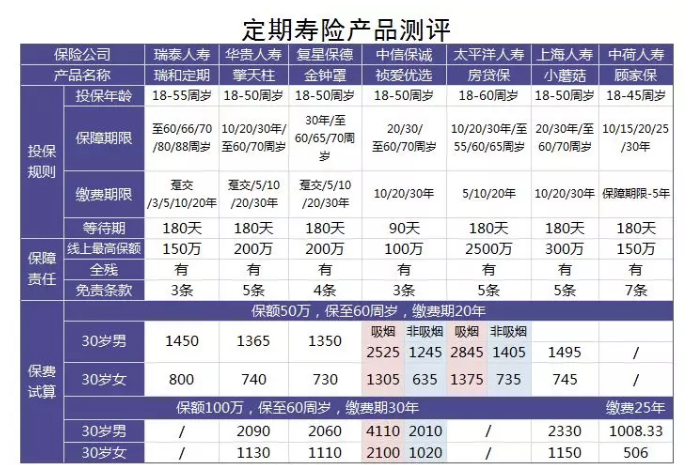 三、6款定期壽險產(chǎn)品測評