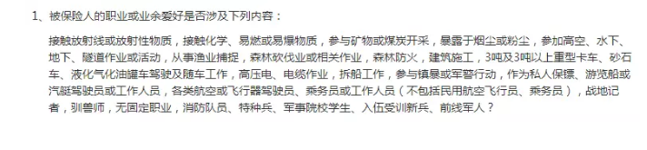 職業(yè)限制:金鐘罩把職業(yè)限制寫進(jìn)了健康告知,詢問如下: