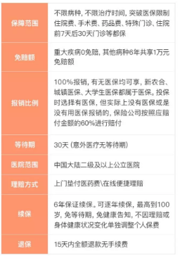 2、6年內(nèi)免賠額共1萬(wàn),100種重疾0免賠