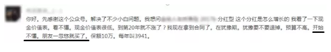 業(yè)務(wù)員:誰家賺點(diǎn)錢都不容易,買個(gè)保險(xiǎn)沒生病錢不就白花了么?!這款產(chǎn)品的分紅很可觀,來我給你算一下看看……