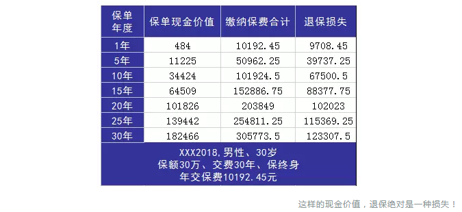 但是現(xiàn)在市面上大部分的重疾險(xiǎn),現(xiàn)金價(jià)值是遠(yuǎn)低于已交保費(fèi)的。比如這位朋友被推銷的,某熱銷產(chǎn)品XXX2018,其現(xiàn)金價(jià)值表如下圖