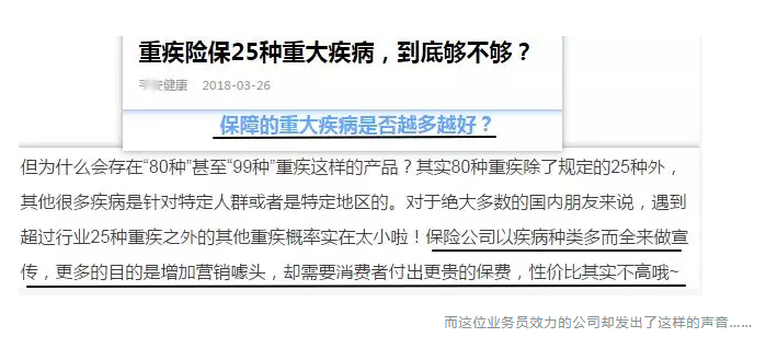更別說這位業(yè)務(wù)員自己公司的公眾號(hào)也曾發(fā)文稱:25種重大疾病就夠了。這些業(yè)務(wù)員朋友為了出單,連自己公司說的話都不認(rèn)了??!