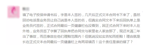 就像剛剛說過的,保險產(chǎn)品相關(guān)的很多注意事項,都在合同里,(看不看的懂就另說了)。所以有人就開始打起了合同的主意……