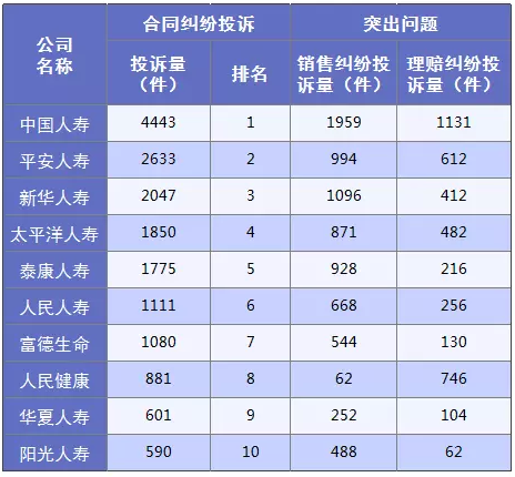 那么2018年合同糾紛投訴最高的保險公司是誰!我們來看看統(tǒng)計: