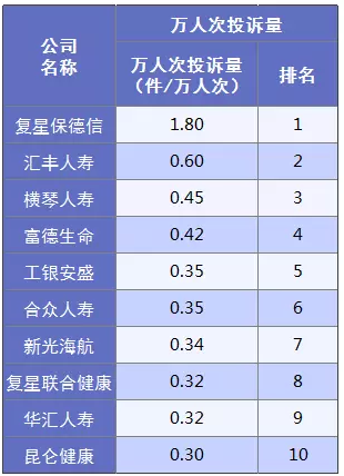 我們可以看出來,即使是萬人次投訴量最高的復(fù)星保德信,也僅為1.8。