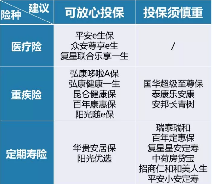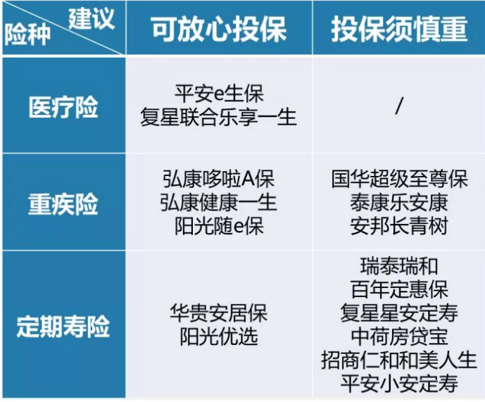 這些產(chǎn)品,多保魚分為“可放心投保”和“投保須慎重”兩類。