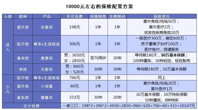 1)10000左右的話,盡可能把重疾保額做高,同時(shí)為孩子購(gòu)置保險(xiǎn)。
