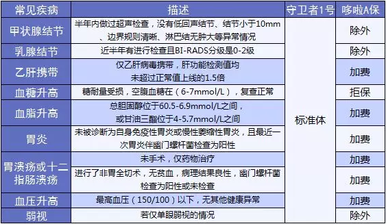 但是,哆啦A保的優(yōu)勢(shì)就在于,大小三陽(yáng)也可以加費(fèi)承保,但守衛(wèi)者1號(hào)就比較嚴(yán)格,直接是拒保。