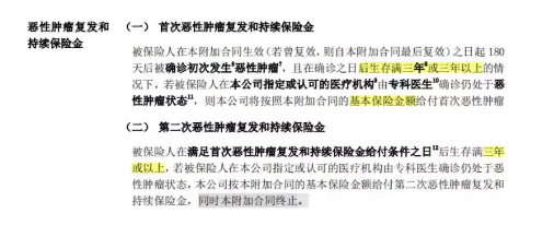聽著感覺很不錯(cuò),但是很多朋友可能會(huì)擔(dān)心,這個(gè)附加險(xiǎn)條款會(huì)不會(huì)跟某福的賠付要求一樣:首次賠付必須是惡性腫瘤才有效?