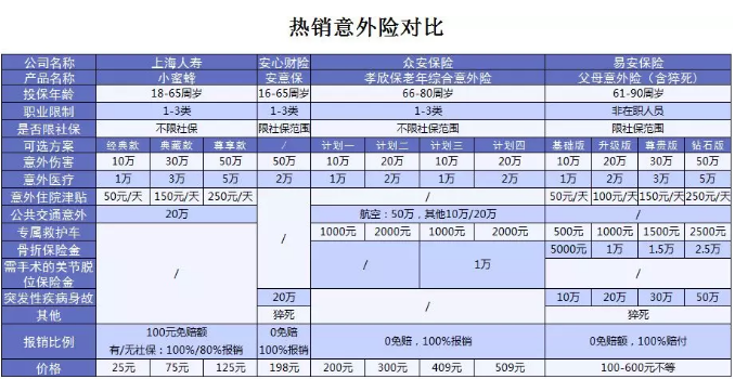 多保魚看了現(xiàn)在市面上的幾款意外險,總結了以下4款性價比較高產(chǎn)品來分析: