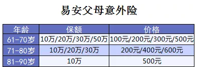 大部分的老年意外險,投保年齡都限定在85周歲以下。年齡越大,風險越高,而易安最高90周歲可投保是很多意外險都做不到的。