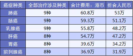 香港一個(gè)專業(yè)醫(yī)療團(tuán)隊(duì),給出了部分高發(fā)癌癥全套治療費(fèi)用測(cè)算報(bào)告: