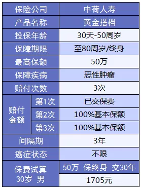 今天,中荷人壽也出了一款多次賠付的防癌險(xiǎn),號(hào)稱重疾險(xiǎn)的黃金搭檔,所以它的名字也叫作“黃金搭檔”。