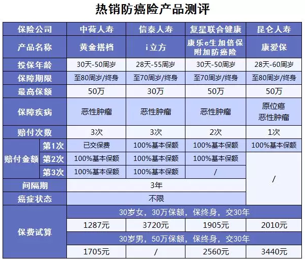三、熱銷防癌險(xiǎn)產(chǎn)品測(cè)評(píng)