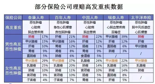 這是部分保險公司高發(fā)重疾的理賠數(shù)據(jù),可以看得出: