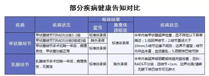 如果有甲狀腺、乳腺結(jié)節(jié)的朋友,星悅的核保條件更加友好寬松一些!