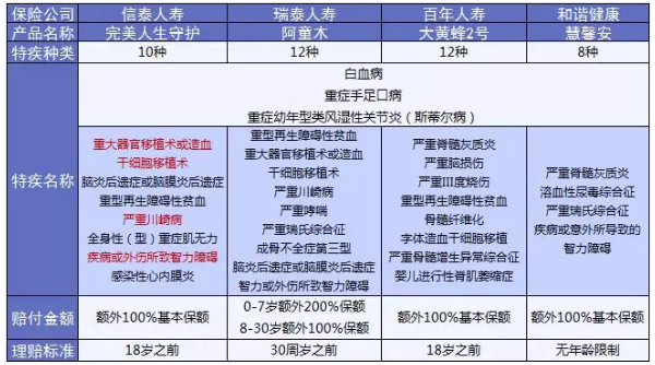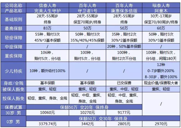 完美人生守護的少兒特疾涵蓋全不全面呢?多保魚拿了幾款熱銷的少兒重疾險來與之比較一下: