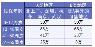 此外,還有對部分人群有最高保額限制:成年學生41萬;未成年學生50萬;家庭主婦、離退休人員、無業(yè)人員25萬。
