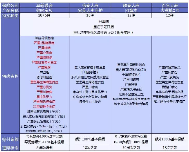 涵蓋少兒特疾的產(chǎn)品其實(shí)很多,保魚君挑選了幾款比較有特點(diǎn)的產(chǎn)品來(lái)與媽咪保貝做個(gè)比較: