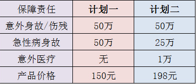 計劃1保障意外身故+傷殘+急性病身故責任,急性病身故保額高達50萬;