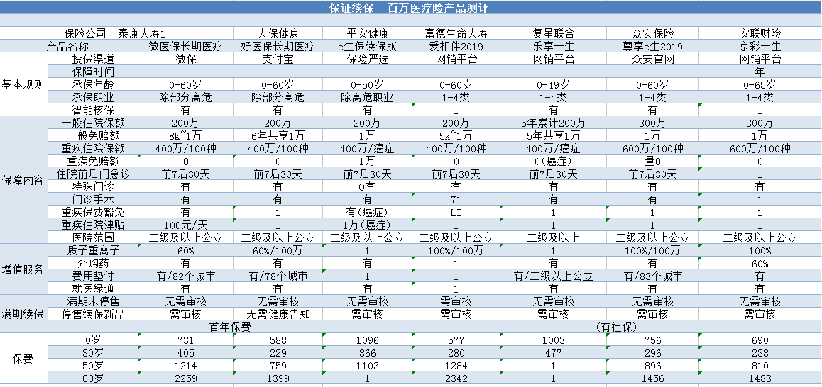 目前,市面上保證續(xù)保的醫(yī)療險并不多見,小編整理了幾款產(chǎn)品: