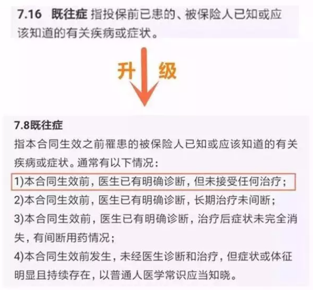 在免責(zé)條款里,變化最大的是關(guān)于“既往癥”的描述: