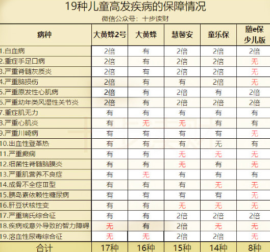 對于19種兒童高發(fā)重疾,這些兒童包括在上述每個產(chǎn)品中: