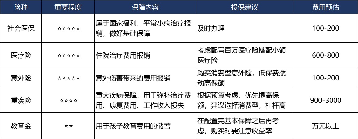 寶寶的保險(xiǎn)配置套餐