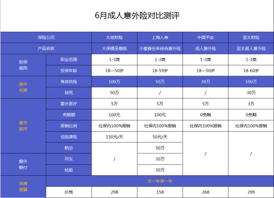 6月份意外險(xiǎn)榜單!最好的都在這里了!
