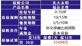 假設(shè)投保人年交1萬元保費(fèi),交10年,保15年,保額35490元。那么,可以領(lǐng)到的錢是2.5萬元。