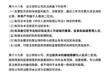 - 要持續(xù)很有錢:至少2億,還得是實(shí)打?qū)嵉默F(xiàn)金貨幣,但從目前保險(xiǎn)公司的注冊(cè)資本來看,很少有低于20億的。