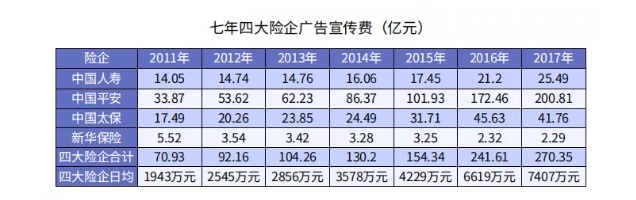 而“大保險(xiǎn)公司”砸在廣告上的費(fèi)用有多少呢?