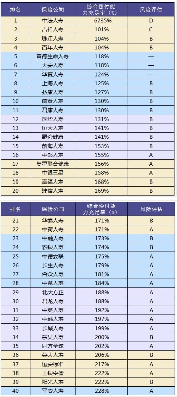 再者說(shuō)保險(xiǎn)公司償付能力或者風(fēng)險(xiǎn)評(píng)級(jí)的波動(dòng)很正常,距離保險(xiǎn)公司無(wú)法履約還非常遙遠(yuǎn)。以下表格是18年第4季度壽險(xiǎn)公司的償付能力和風(fēng)險(xiǎn)評(píng)估!