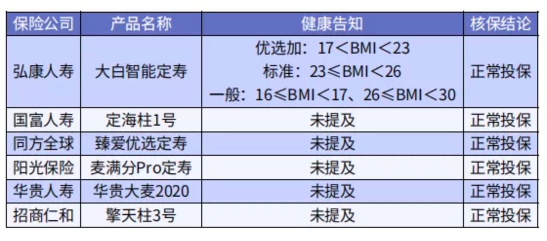 也就是說無論是超重還是偏瘦的人群,只要能通過健康告知,都能順利買到壽險(xiǎn)。