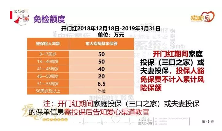 在產(chǎn)品開放期間,被保險(xiǎn)人的豁免的保費(fèi)不包括在保額的累積風(fēng)險(xiǎn)中。例如,丈夫和妻子都是35歲。根據(jù)規(guī)定,醫(yī)療豁免金額為500,000。即使被保險(xiǎn)人是豁免,你仍然可以購買50萬保額的;