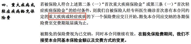 包括輕癥豁免和重疾豁免,一旦涉及合同疾病,后續(xù)保險(xiǎn)費(fèi)用、合同的豁免仍然有效。