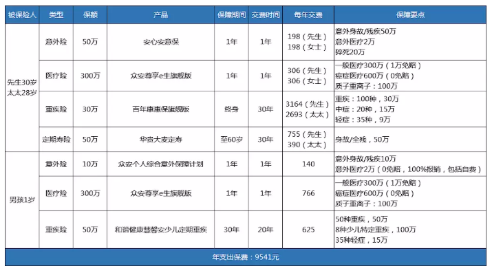 當然以上的保險方案僅供大家參考,我們需要知道的是每個家庭的需求和實際情況都是不一樣的,要多方面的考慮到家庭的各個因素,這個是我們需要注意的,適合自己的才是最好的。