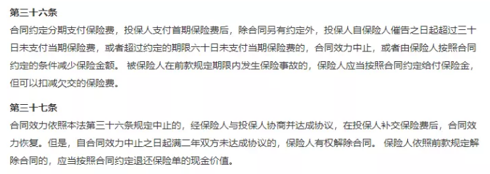 有些人跑來問多保魚,自己忘了交保費(fèi),該怎么辦,保單會(huì)失效嗎?保險(xiǎn)公司會(huì)拒絕賠付嗎?不用著急,我們先來看看“保險(xiǎn)法”第36條和第37條怎么說: