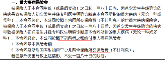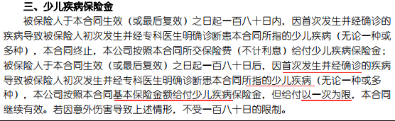 評論:估計(jì)為了使產(chǎn)品更具競爭力,該產(chǎn)品的精算師特別推出了“兒童疾病”的概念。事實(shí)上,這很奇怪。由于它被稱為康寧兒童的疾病,為什么我們要特別定義關(guān)于兒童疾病的部分?