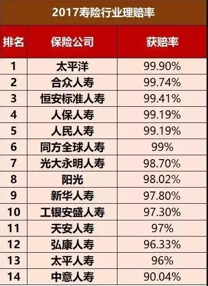 關(guān)于賠償問(wèn)題,中國(guó)保險(xiǎn)監(jiān)督管理委員會(huì)對(duì)此進(jìn)行了嚴(yán)格監(jiān)控。人壽保險(xiǎn)公司每季度的償付能力必須超過(guò)100%,即如果所有投保人尋求保險(xiǎn)公司的索賠,保險(xiǎn)公司必須具備相應(yīng)的能力支付。如果保險(xiǎn)公司的償債能力不足,中國(guó)保監(jiān)會(huì)將要求停止新訂單的運(yùn)作,保險(xiǎn)公司股東將被要求注入資金,而保險(xiǎn)公司的股東都是國(guó)家支柱產(chǎn)業(yè)。讓我們來(lái)看看2017年保險(xiǎn)公司的賠償率:
