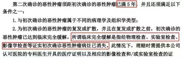 需要特別注意,賠付負責癌癥多次賠付產(chǎn)品,對于新癌癥鯤連續(xù)鯤傳遞鯤應(yīng)該包括復發(fā),但市場上的一些產(chǎn)品對于癌癥二級賠付的條件非常嚴格,如:天安健康源2019條款中約定: