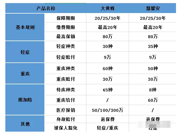 對于該產(chǎn)品,小小梅認為大黃蜂兒童的重大疾病保險或慧馨安兒童的常規(guī)重病保險相當不錯。這兩種產(chǎn)品相似并含有兒童的特定疾病,有8種慧馨安和45種大黃蜂。如果您不幸患有特定的嚴重疾病,慧馨安賠付會使保額增加一倍,而大黃蜂則會獲得保額,并且可以享受高達300萬的醫(yī)療報銷保額。具體分析具體情況,哪個產(chǎn)品更好還是要看自己的情況,按需購買。